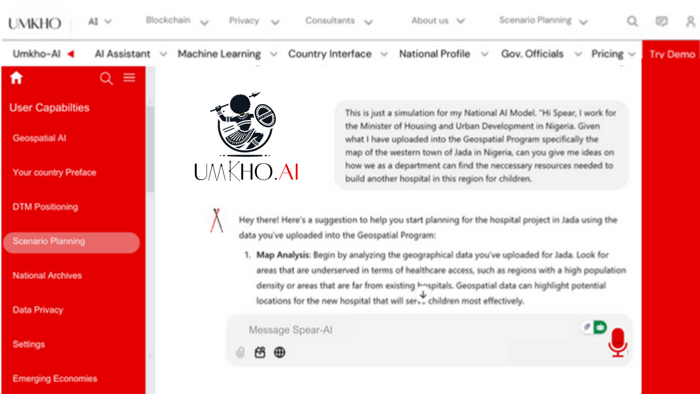 Figure 1: User Interface for UmkhoAI Private. Tailored specifically for National leaders, politicians and Government Departments.